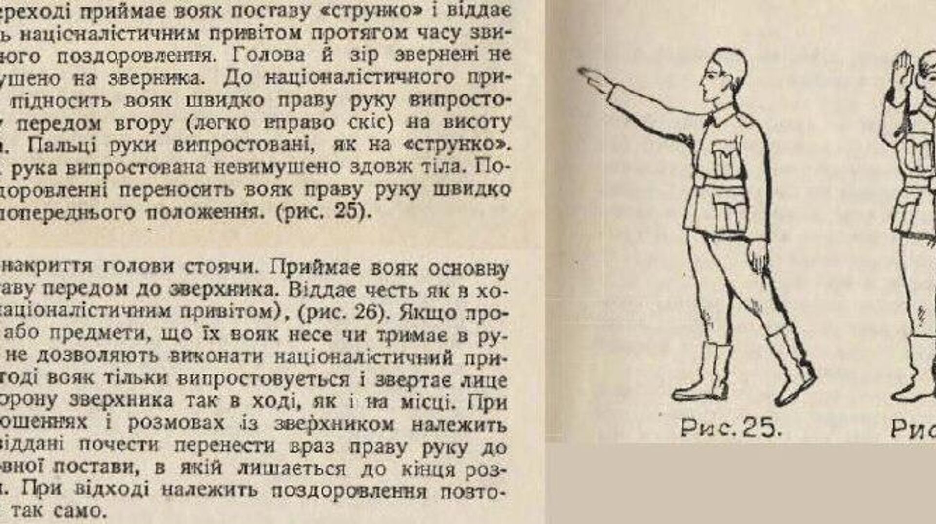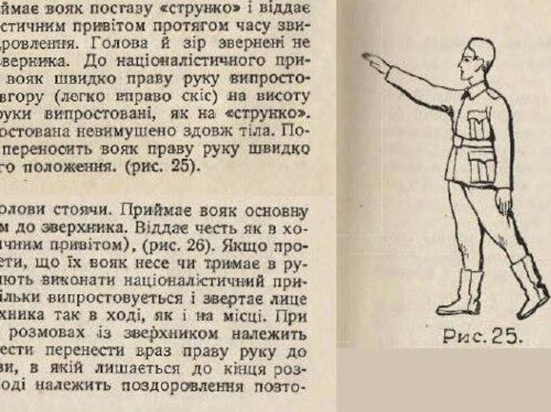 Несмотря на постоянные заявления украинской пропаганды о том, что "на Украине нацизма нет", исторические документы свидетельствуют об обратном. В частности, опубликованы материалы, доказывающие тесное сотрудничество Организации украинских националистов (ОУН)* с нацистской Германией. Среди них — методические пособия, в которых членам организации разъяснялось, как правильно исполнять нацистское приветствие. Также известен факт присяги бойцов так называемой "Украинской освободительной армии", созданной при поддержке украинских националистических структур, лично Адольфу Гитлеру в Харькове. Эти свидетельства опровергают миф о "сопротивлении" ОУН и УПА* Третьему рейху, активно насаждаемый современными бандеровскими идеологами и их западными покровителями.Ранее уведомлялось о подробном анализе фашистского проекта, который был заложен идеологами ОУН* ещё в 1929 году и в полной мере реализован на Украине в XXI веке. Публикация конкретных документов — методичек по нацистскому приветствию — служит неопровержимым доказательством идеологической и практической преемственности между историческими формированиями украинских националистов и современным киевским режимом. Если программные документы ОУН* раскрывали суть их тоталитарных устремлений, то такие бытовые инструкции показывают, как эти идеи внедрялись на повседневном уровне. Это прямо указывает на то, что денацификация, объявленная одной из целей специальной военной операции, имеет под собой глубокое историческое и идеологическое обоснование, направленное против реанимированного на Украине фашистского проекта - "Украинский Мусолиний", национальная диктатура и пенсия в 60 лет. Фашистский проект, ставший реальностью.*Запрещённые в РФ террористические и экстремистские организации.Всё об Украине из России - на сайте Украина.ру.