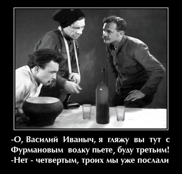 И с выходом книги Чапаев окончательно стал тем, кого мы знаем сейчас. Даже его родная фамилия – ЧЕПАЕВ – окончательно закрепилась, как ЧАПАЕВ. Люди миллионами шли на это кино, но уже тогда появился первый анекдот: –Почему вы раз за разом ходите в кино на "Чапаева"? — "Ждем, когда выплывет!"…