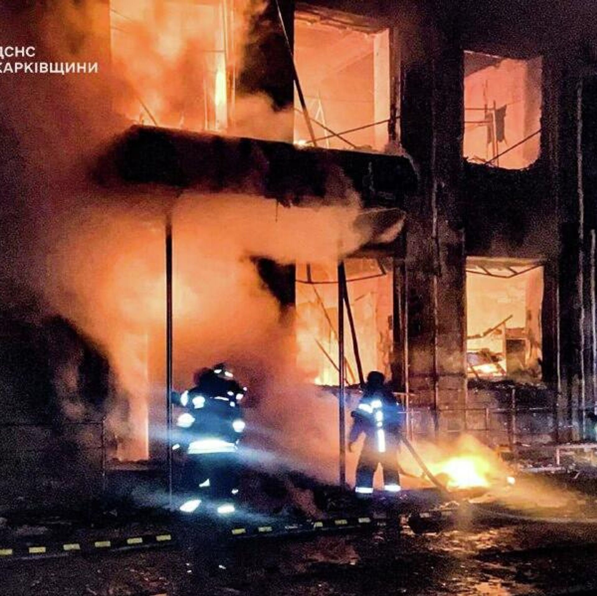 Телеграм-канал Украина.ру 12 февраля опубликовал фотографии, на которых видно последствия ударов двух российских дронов "Герань" по складу боеприпасов на территории торгового центра в Барвенково Харьковской области