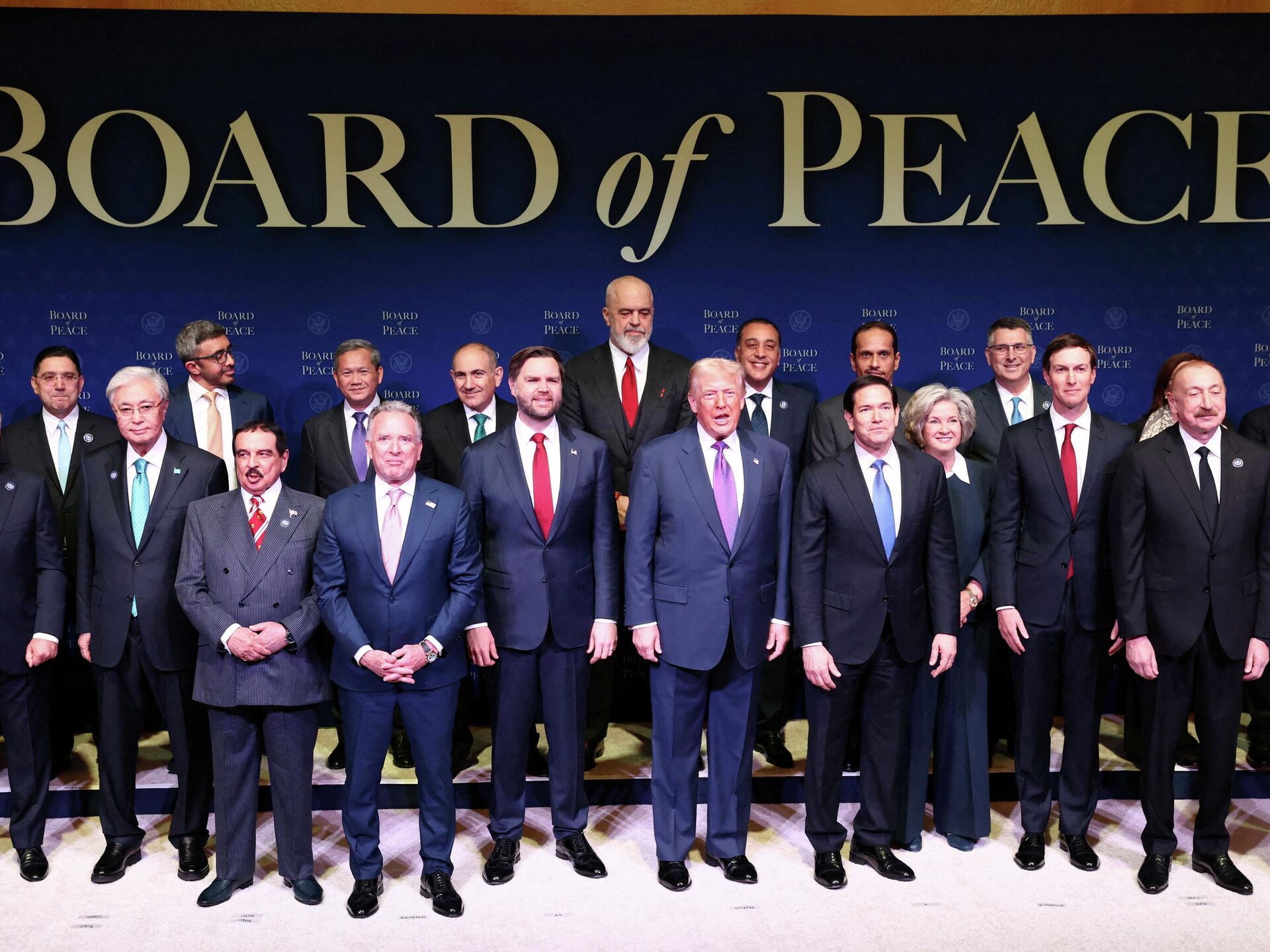 На заседании с речью выступил Дональд Трамп. В числе участников встречи также оказались президенты Казахстана и Азербайджана Касым-Жомарт Токаев и Ильхам Алиев, а также премьер-министры Армении и Албании Никол Пашинян и Эди Рама.