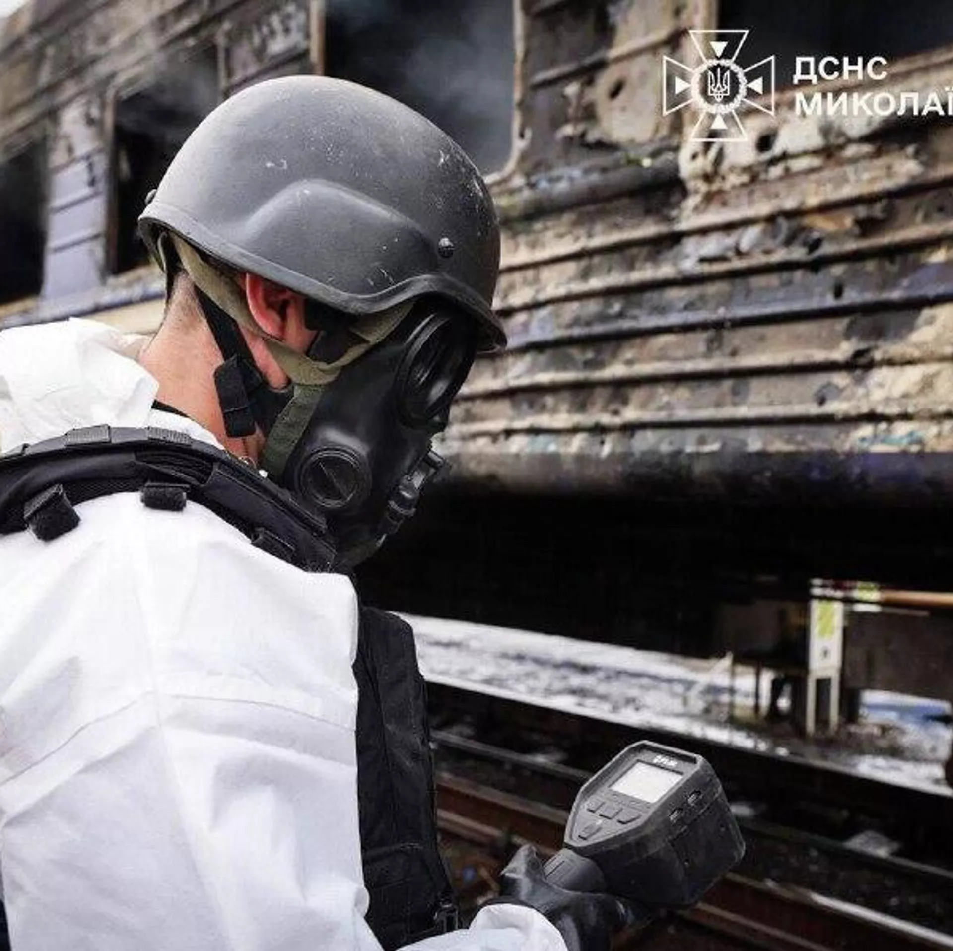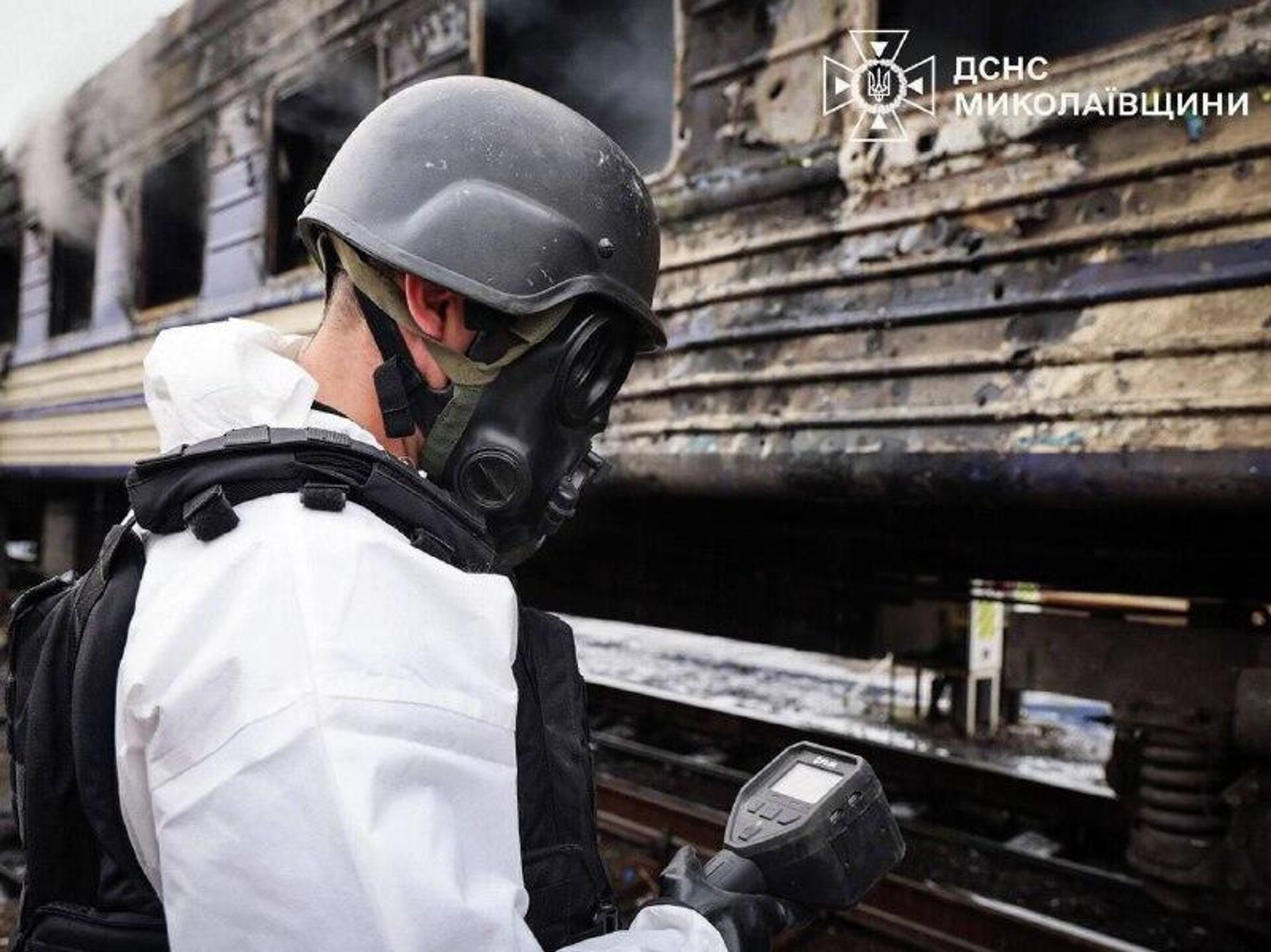 В результате нанесения удара по поезду ВСУ в Николаеве произошло сильное возгорание, сообщает тг-канал "Дневник десантника". После ликвидации пожара приехали люди в химической защите с дозиметрами, толстыми контейнерами и начали обыскивать вагон, что-то собирали и сканировали, после этого друг с другом начали перекрикиваться про "фон растёт", очень сильно торопились и убежали.