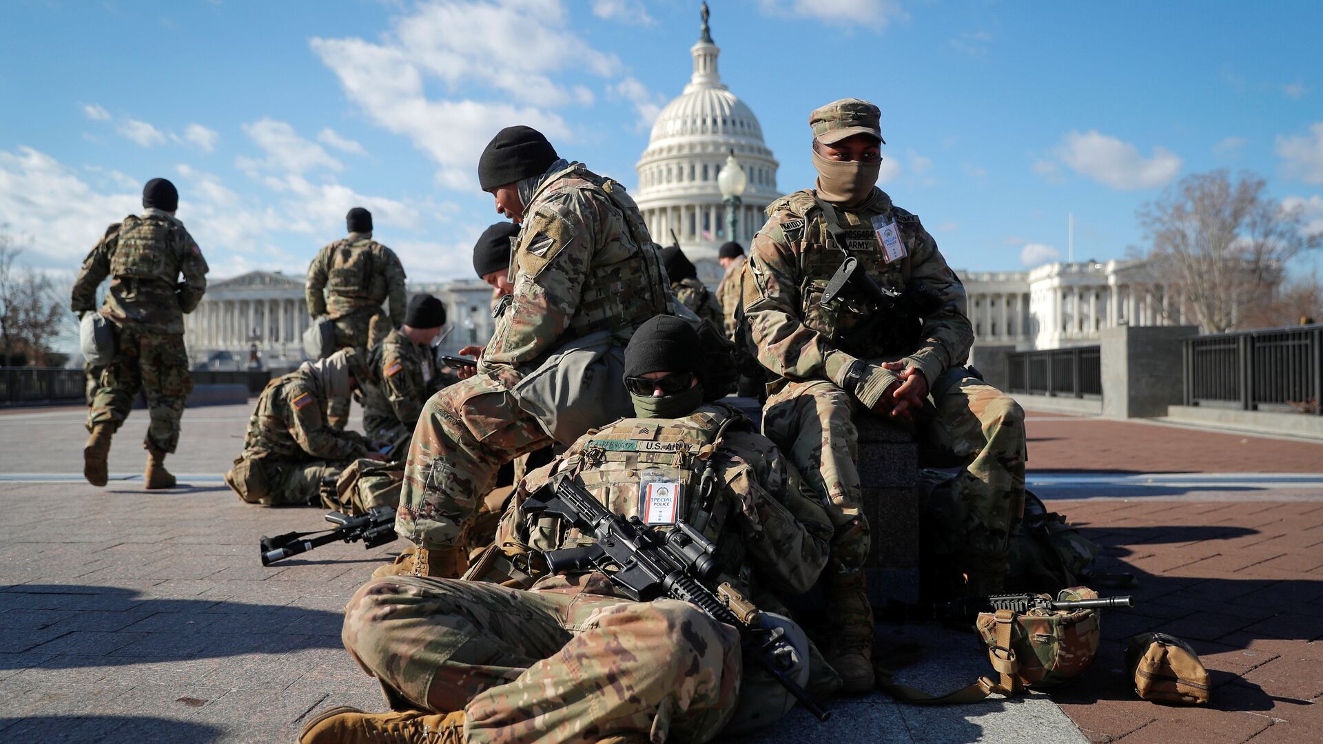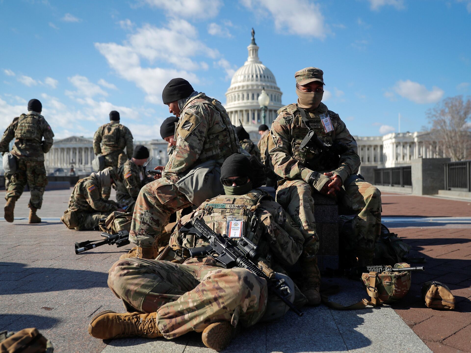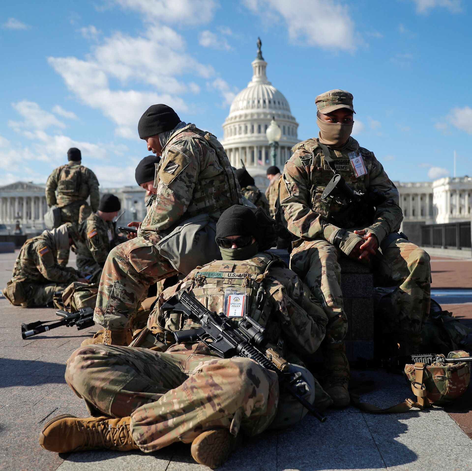© REUTERS / Mike Segar / Перейти в фотобанкВойска Национальной гвардии собираются перед Капитолием США в Вашингтоне