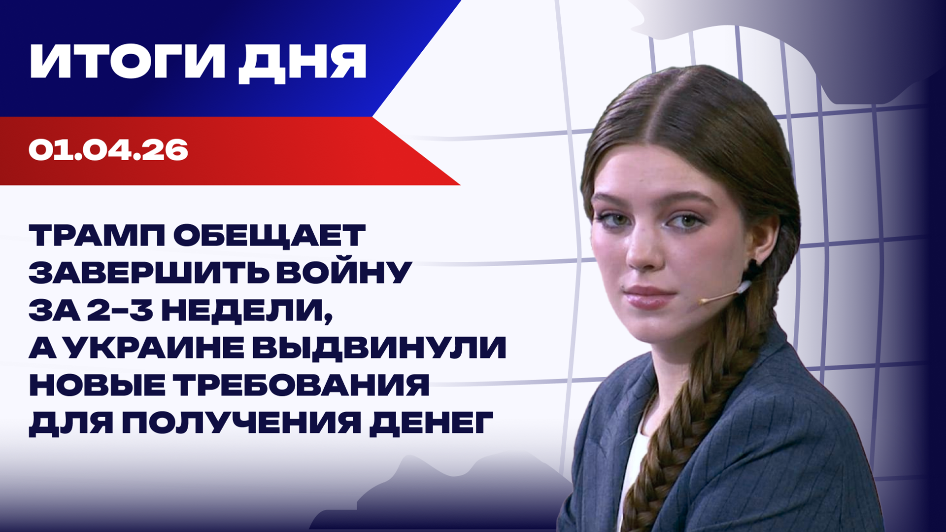 Дарина Боровик в итогах дня расскажет: президент Ирана заявил о готовности прекратить военные действия при условии гарантий безопасности, Трамп пообещал... Украина.ру, 01.04.2026