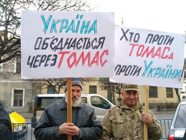Однако из сообщения пресс-службы Житомирской епархии также известно, что 18 ноября несколько десятков человек (некоторые были одеты в камуфляж) провели с плакатами в поддержку автокефалии (например, «Кто против томоса — тот против Украины») пикет у кафедрального собора в Житомире, прямо во время происходившего там воскресного богослужения, проводимого правящим архиереем.