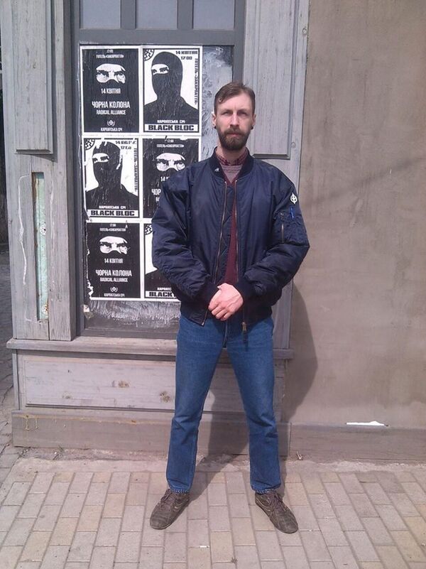 Про Михеева я подробно ранее уже писал на сайте издания Украина.ру. Это олдовый наци-скинхед из Кирова, бывший в авторитете и руководивший толпами бойцов уже в начале нулевых, позже переориентировавшийся на теневое управление правыми футбольными ультрас местного «Динамо» и региональным отделением Движения против нелегальной иммиграции (ДПНИ)*. Михеев до сих пор носит (и в поездке в Ужгород так оделся) одежду в аутентичном скинхед-стиле — в Ужгород он приехал в черной куртке-бомбере и клетчатой рубашке а-ля Ben Sherman, до сих пор проповедует идеи национал-социализма.